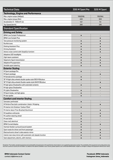 Hadir dengan 2 variant Msport Package 320i dan 330i, The 3 memberikan gaya berkemudi sport, ditambah dengan fitur BMW Connected Drive menjadikan sang legenda terbaik di kelasnya.