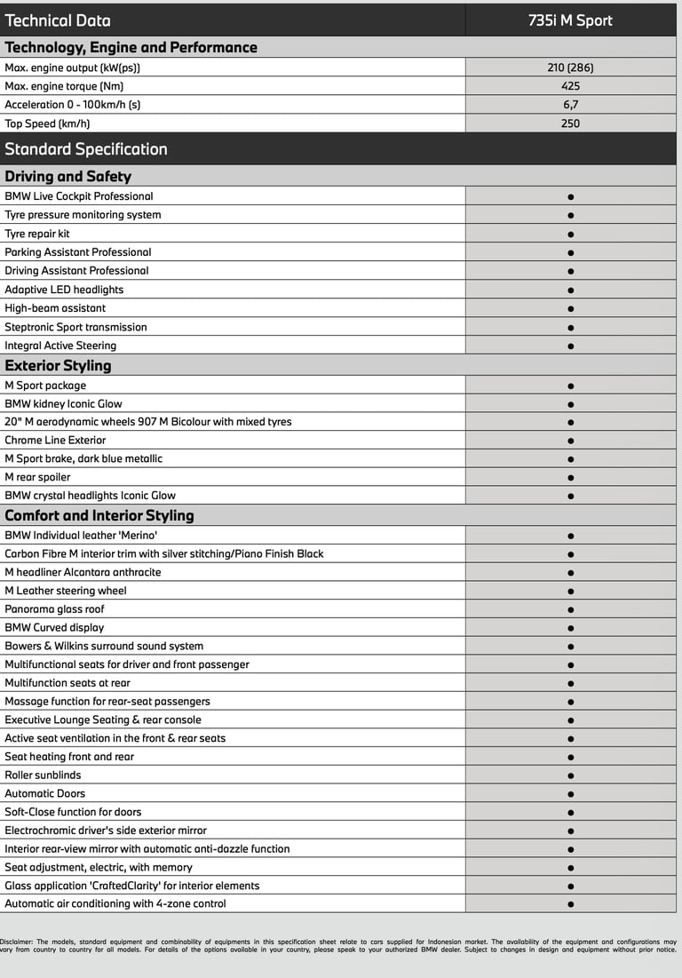 The 7 menggabungkan design yang presisi, tenaga yang dinamis dan teknologi kelas dunia menjadikannya BMW Fun To Drive, dengan design Interior dan Exterior mewah