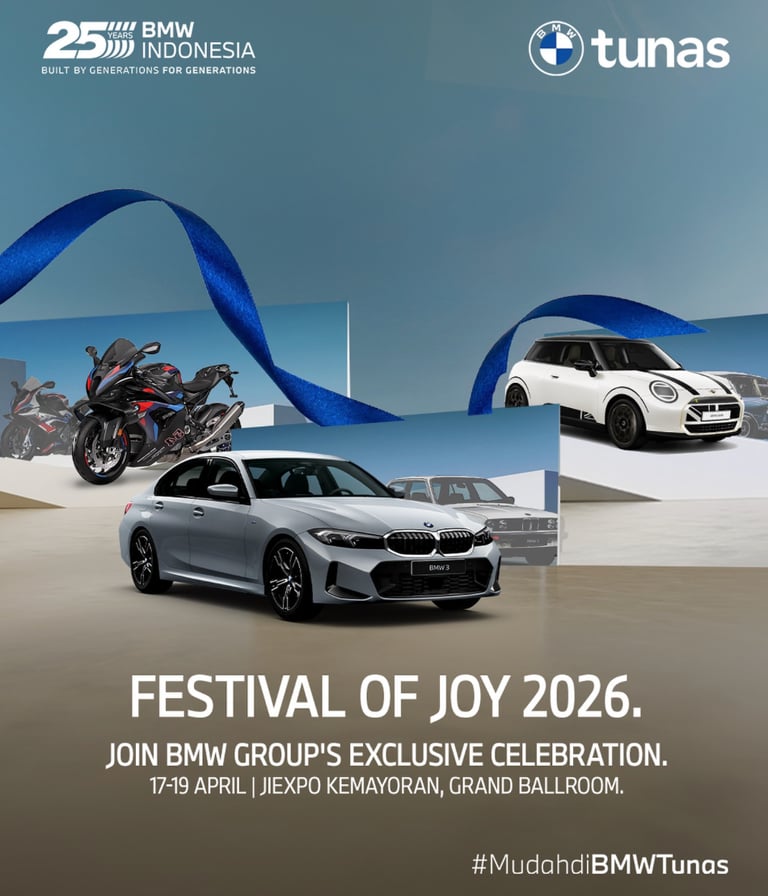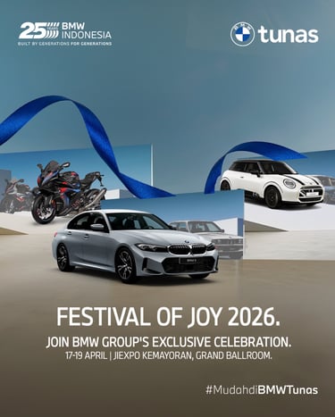Be part of Festival of JOY 2026, an exclusive showcase by BMW Group Indonesia, uniting BMW, MINI, and BMW Motorrad in one destination. Discover a curated lineup of vehicles, enjoy test drive experiences, and immerse yourself in family-friendly activities, entertainment, and F&B offerings throughout the event.