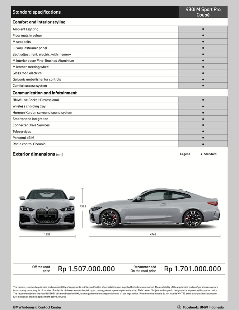 Setiap bagian Bmw seri 4 di design dengan sangat radikal, di lengkapi Msport Pro Package menjadikan The 4 tampil sangat iconic