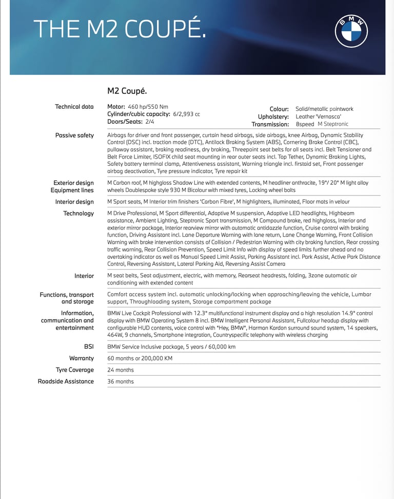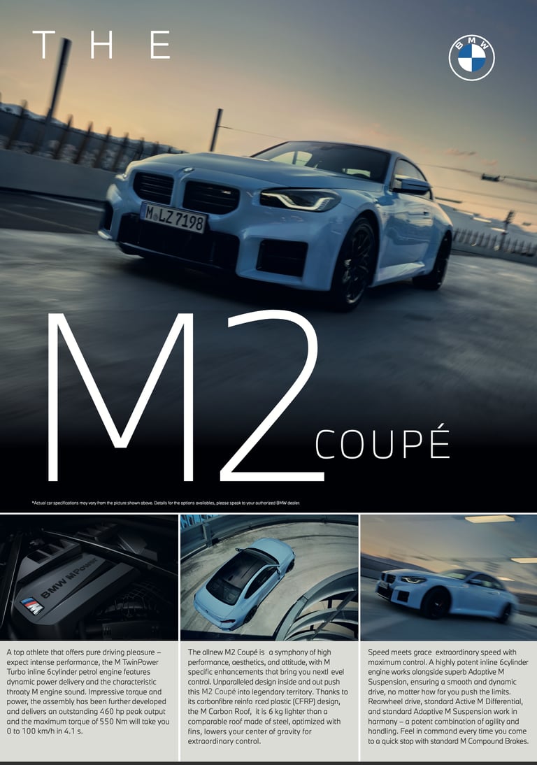 The M2 CS is optimized for thrill. A high-performance engine, CS-specific suspension and selected lightweight elements come together to generate precision driving dynamics on the road and racetrack